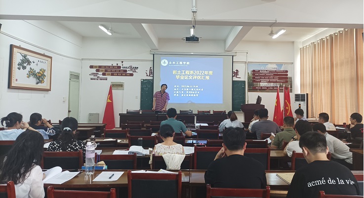 本网讯 为做好学校优秀本科毕业设计(论文)推荐工作,土木学院岩土工程系于6月13日组织开展了2022届毕业设计(论文)评优汇报,岩土工程系地质工程、勘查技术与工程、城市地下空间工程专业多名学生和14位评委教师参加会议。