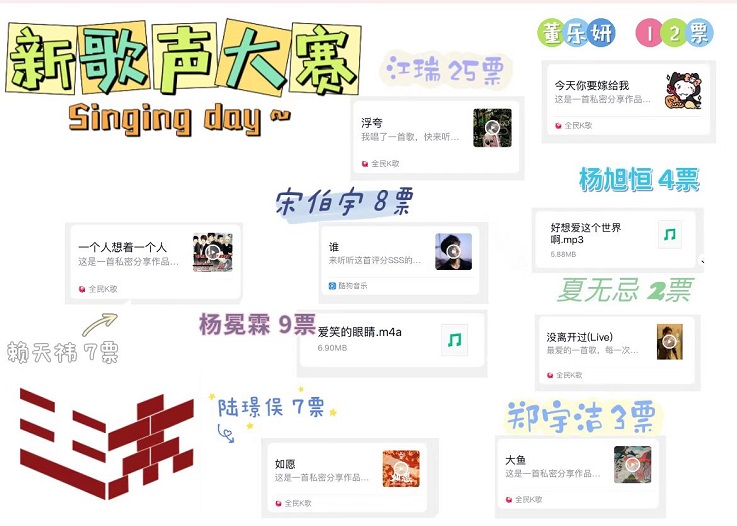 比赛分为两轮,经过初赛的激烈角逐,10位优胜者获得了决赛的入场券。为响应疫情防控号召,决赛采取线上评选的方式进行,根据选手们录制好的歌曲进行评比。评分环节设置了大众评审团,同学们可以在线上为自己喜欢的选手投票,此举更体现了比赛的公平性。每位选手都在用自己的方式表达对音乐的理解与态度,为大家带来了一场视听盛宴。最后,江瑞同学一举夺下土木之衔,董乐妍与杨冕霖荣获二等奖,陆璟俣、宋伯宇、赖天祎同学获得三等奖。