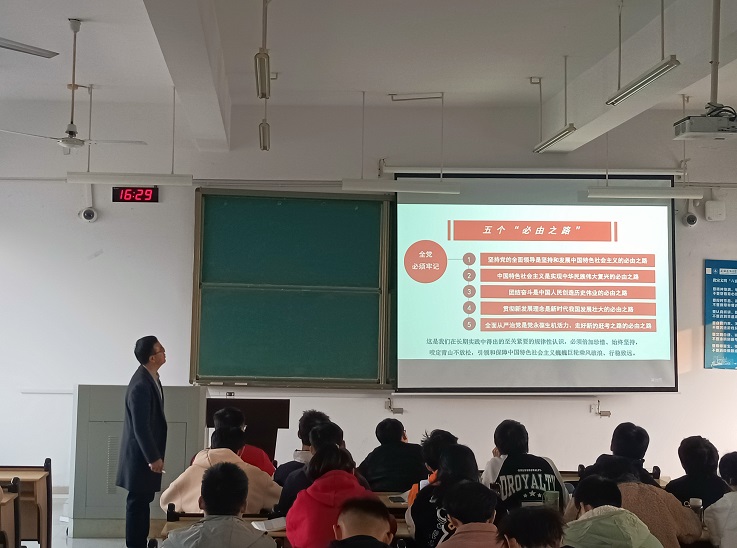 为全面学习宣传贯彻党的二十大精神,学院党委副书记张锐对于党的二十大精神进行了宣讲,用党的科学理论武装青年,用党的初心使命感召青年。同学们深入学习了党的二十大精神,并对其中精神有所感悟。提高自身思想境界,确立远大目标、努力学习,以青春之心,投身于新时代的建设中。