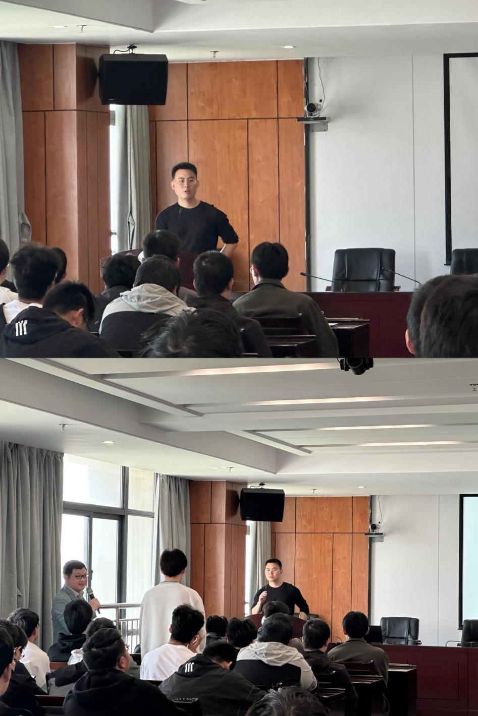 科技是第一生产力,人才是首要资源,创新是持续动力。张辰啸结合自身经历,分别从敢想、敢做、善作、善成四个方面,讲述创新创业的动力来源、实践过程中的坚持不懈、面对挫折的迎难而上综合能力提升的必要性、团队协作的重要性、创新创业的一贯性,鼓励大家树立明确的奋斗目标,培养自己特长,通过参加比赛活动锻炼知识运用能力,从每一个小成绩开始积累,铸就自身闪光点。