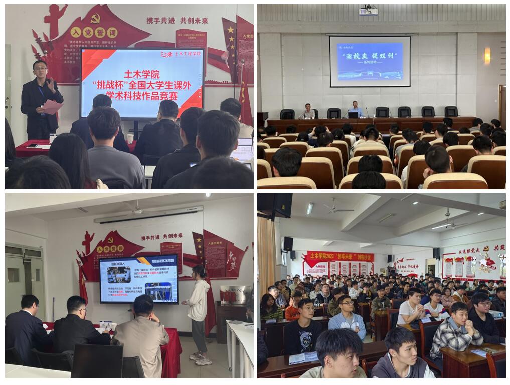 4月12日,土木学院组织开展第十届“挑战杯”课外学术科技作品选拔赛。经过3轮培育,最终有12组项目进入决赛。比赛包括现场展示与答辩两个环节。评委老师从参赛作品的科学性、先进性、社会价值、创新意义、发展前景、应用前景等多方面进行提问和评价,并给出中肯建议,帮助各团队进一步完善作品,为后续比赛做好准备。 4月15日,由教务处主办、土木学院承办的“互联网+”大学生创新创业大赛讲座在南校区图书馆五楼报告厅顺利举办。讲座由全国“互联网+”大赛国赛专家委员会委员、评委,教育部全国万名创业导师库创业导师胡健主讲,近200名师生参加。胡健老师解读了举办“互联网+”大学生创新创业大赛的目的和深远意义,从“互联网+”大赛的背景、赛制、历届获奖等方面详细解读该项赛事的基本情况,从创新点、市场分析、竞争分析、盈利模式、团队及融资计划等方面介绍高教主赛道和青年红色筑梦之旅赛道的特点。讲座后,胡健老师回答了同学们关心的热点问题,现场指导了两组参赛作品。
