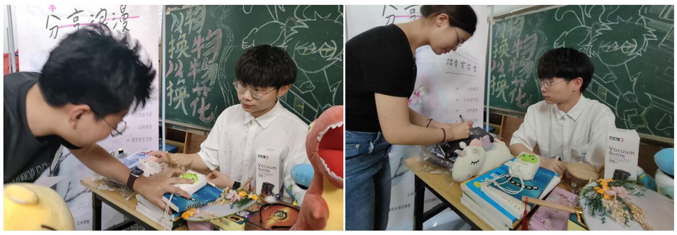 活动宣传阶段,同学们纷纷在线上接龙,晒出可用于交换的闲置物品。有的想要交换书本、有的拿出了可爱的玩偶、有的想用手工制品置换健身器材。活动当天,往来同学被各式物品吸引,在展台前驻足、挑选。一位女生表示这是她第一次尝试以物换物。“我有很多玩偶,已经放不下了,但是又舍不得丢掉,很高兴闲置的物品又重新有了价值。”为践行物尽其用的环保理念,主办部门贴心的为没有置换到心仪物品的同学准备了美丽的鲜花。 本次活动不仅让同学们明白如何充分发挥物品的价值,提高资源利用率,更让“绿色、低碳、环保”的理念深入人心,促使更多同学积极参与到环保实践行动中去。(图/文:王月竹,章凤,任圆;审核:王媛) |