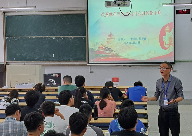 学院党委副书记马智鑫做题为“改变就在当下 奋斗什么时候都不晚”的主题报告,表示党员应树立奋斗意识,不断加强党性修养,提高政治素养,不断提升自身综合素质,充分发挥先锋模范作用。