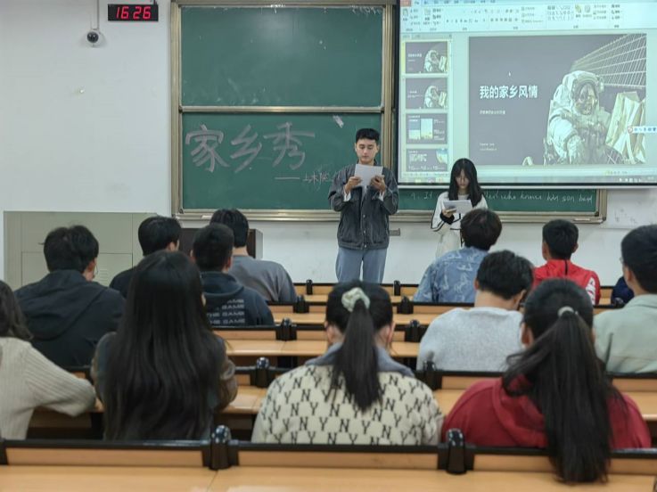 树高千尺,落叶归根,家乡是人们内心最深处的柔软。活动中,同学们以文字、图片的形式分享家乡美景和风俗人情等。王鑫旺介绍了津门故里——天津,东临渤海、北依燕山、西靠首都的天津,是一座古老又现代的城市,面积虽然不大,但充满历史气息,每一处建筑都见证了历史。狗不理包子、桂发祥麻花、耳朵眼炸糕,还有大家熟悉的煎饼果子,这些津门美食,样样堪称经典。方玲慧则从安庆的发展历史为起点,介绍了她的家乡。安庆别名“宜城”,天柱山、巨石山、独秀园、孔雀东南飞……无不体现了安庆悠久的历史、灿烂的文化、旖旎的自然风光、丰富的人文景观。周俊给大家介绍了一座跨长江、淮河两大流域的城市——滁州,皖东第一名山——琅琊山、“醉翁之意不在酒,在乎山水之间也”的醉翁亭、中国改革第一村的小岗村……涵盖了自然风光、历史文化、民俗风情等多个方面。滁州的美食以清淡为主,以面食和水产为特色,如凤阳烧卖、天长烧饼、定远烙馍、来安烧鸡、全椒烧鹅等。