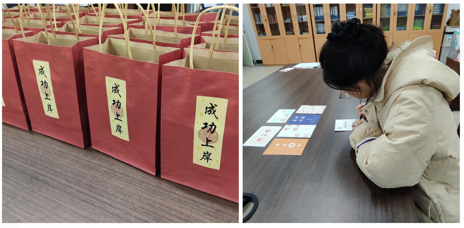 本网讯 为鼓舞考研士气,缓解压力,传递温暖与力量,12月21日,土木工程学生第一党支部开展了“考研送温暖”活动。在本次活动中,党支部为每一位考研同学精心准备了一个“考研福袋”,以学习用具、精美书签和寓意“成功”的糖果作为助力小礼包,为2024届考研同学送上关心关爱与加油鼓励。希望能为考研学子们带来前行的动力,共同迎来收获的时刻。