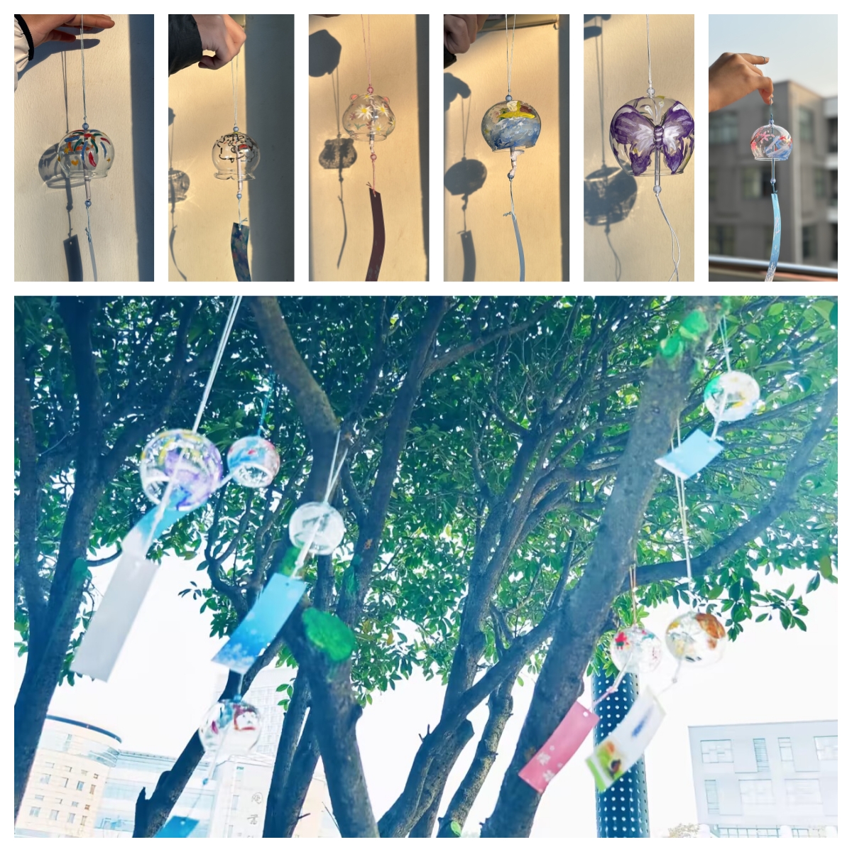 细雨舞如烟,铃声漫风间。本次手绘风铃活动的顺利开展,不仅锻炼了同学们的动手实践能力,激发了创造力,也让大家学会在日常生活中倾听大自然的旋律,感受微风拂过的柔软,让风铃成为我们与大自然对话的纽带。每一阵微风都成为一首和谐的旋律,每一声清脆的铃声都是大自然的心跳,让风的歌声、鸟儿的呢喃、流水的涟漪,成为大家生活中最美的音符,让我们一起用风铃诉说大自然的故事,与大自然的旋律相伴,感受它的魅力,唤醒我们内心深处对于大自然的热爱和关怀。