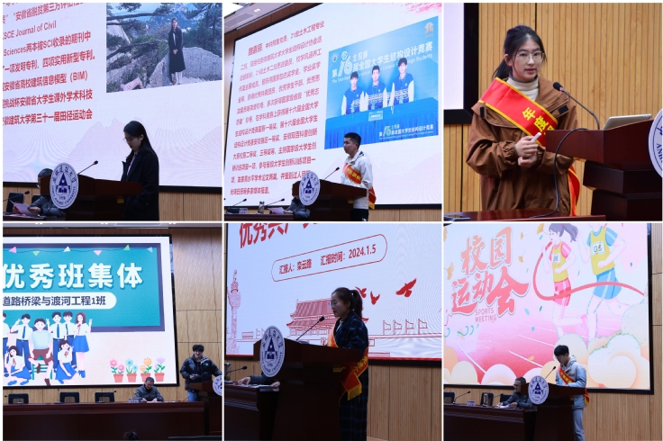 本网讯 为选树先进典型,发挥榜样引领作用,展示学院“五育并举”学生工作成效,土木学院在徽韵楼二楼报告厅隆重召开2023年度“五育并举铸新人”表彰暨成果展示大会,从“德、智、体、美、劳”五个方面,对成绩突出的50名同学和集体做出了表彰。学院全体领导、辅导员老师、获奖学生及各班级学生代表出席本次大会,会议由学院党委副书记马智鑫主持。