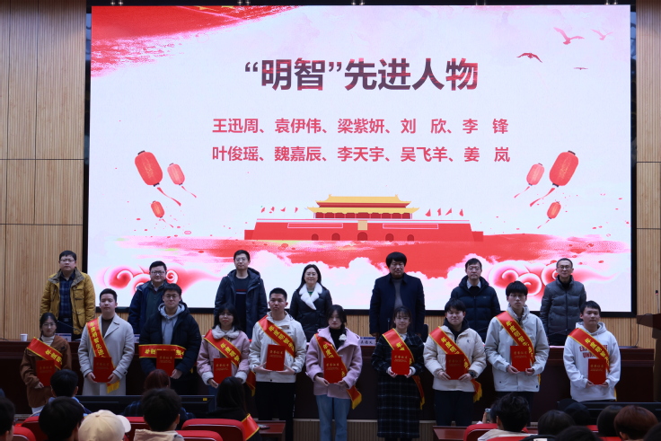 随后,院长吴德义宣读2023年度“树德”典型荣誉称号表彰决定;执行院长张宁宣读2023年度“明智”典型荣誉称号表彰决定;副院长陈东宣读2023年度“强体”典型荣誉称号表彰决定;副院长施国栋宣读2023年度“育美”典型荣誉称号表彰决定;组织员凡大林宣读2023年度“爱劳”典型荣誉称号表彰决定。在热烈的掌声中,获奖同学逐一登台领取荣誉证书。每个奖项背后都蕴含着获奖者们的辛勤付出与卓越成就,优异的成绩为他们赢得了荣誉。同时,也激励着全体同学向他们学习,不断提升自身素质。
