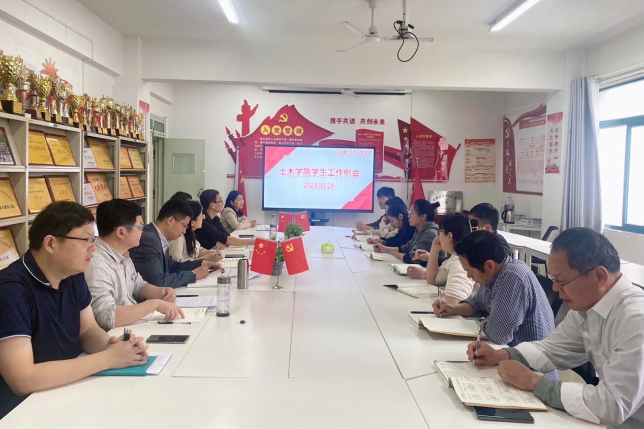 本网讯  为全面贯彻落实立德树人根本任务,切实加强辅导员队伍建设,持续提升学生管理工作质量,3月29日,土木学院在徽匠楼1306会议室召开三月份学生工作例会,主要就近期重点工作开展具体安排部署,学院领导班子、全体专兼职辅导员共同参会,会议由学院党委书记王媛主持。