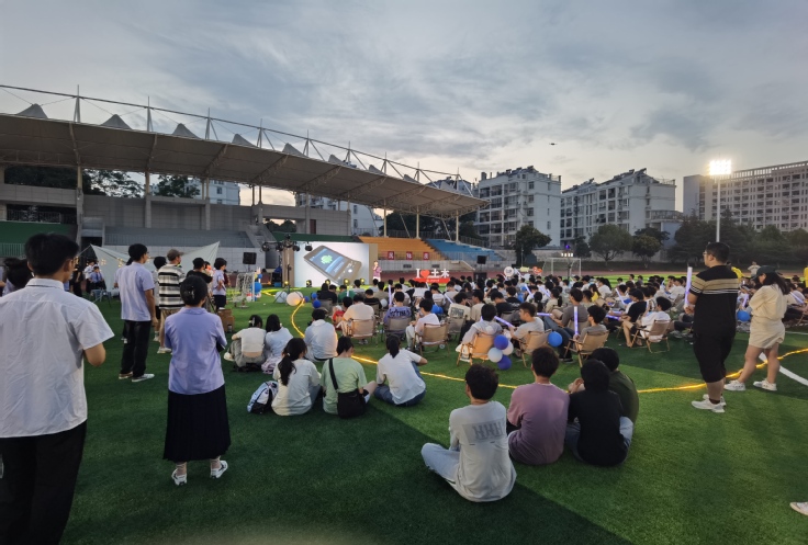 落日西沉、晚星渐明。开场舞狮《盛世欢腾》自由轻快,用扣人心弦的节奏开启晚会的欢乐氛围。武术《拳光剑影》热情四射、舞蹈《小城夏天》节奏欢快,点燃全场热情;《淋雨一直走》、《起风了》、《向阳而生》等歌曲引发在场同学的强烈共鸣,大家挥舞着荧光棒齐声合唱,跟着音乐一起诉说着离别的不舍。
