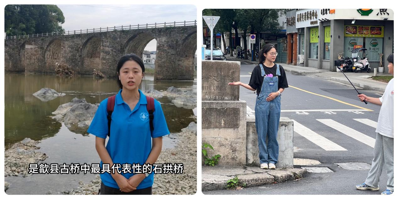 视频宣传,唤醒保护意识。为了更有效地唤起当地居民乃至社会各界对古桥保护的广泛关注与深刻认识,团队成员们精心策划并制作了一系列创意短视频,巧妙地将传统建筑美学融入现代传播手段,通过多元化的新媒体平台广泛传播,让古桥历史韵味与现代生活产生跨越时空的对话。对视频内容进行深度挖掘,分为历史追溯篇、技艺展示篇以及现状危机篇三大板块,分别介绍每座古桥背后承载的丰富的历史故事与文化记忆、古桥独特的建筑技艺与精湛工艺以及直面古桥存在的自然侵蚀、岁月老化等现实问题。视频通过慢镜头、微距拍摄等方式,尽可能清晰地展现古人智慧的结晶,激发观众对古桥技艺的敬畏之心。采用纪实手法,通过展示受损细节,配以沉重的背景音乐和旁白,如同低沉的警钟,在每个人心中回响,唤醒人们保护古桥的意识。