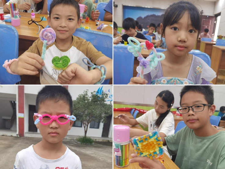 “你的生活本就应该多姿多彩”,从选择石膏娃娃到涂色,孩子们精挑细选,认真调色,在志愿者的帮助下用具有创造性的双手赋予了石膏娃娃各具特色的外观。这不仅是一次美育教育,更是一次心灵的交互,让孩子们找到释放压力的出口,感受创造的乐趣和成就感。扭扭棒通过独特的扭曲,可以创造出形态各异的艺术作品。志愿者介绍了扭扭棒制作的基本原理,鼓励孩子们发挥创造力与想象力,制作独一无二的手工艺品。花朵、戒指、王冠、眼镜,一件件扭扭棒作品通过孩子们灵巧的小手呈现出来,培养了孩子们的动手能力,并引导孩子们在今后的生活学习中转移压力,在创作中发现美和表达美。