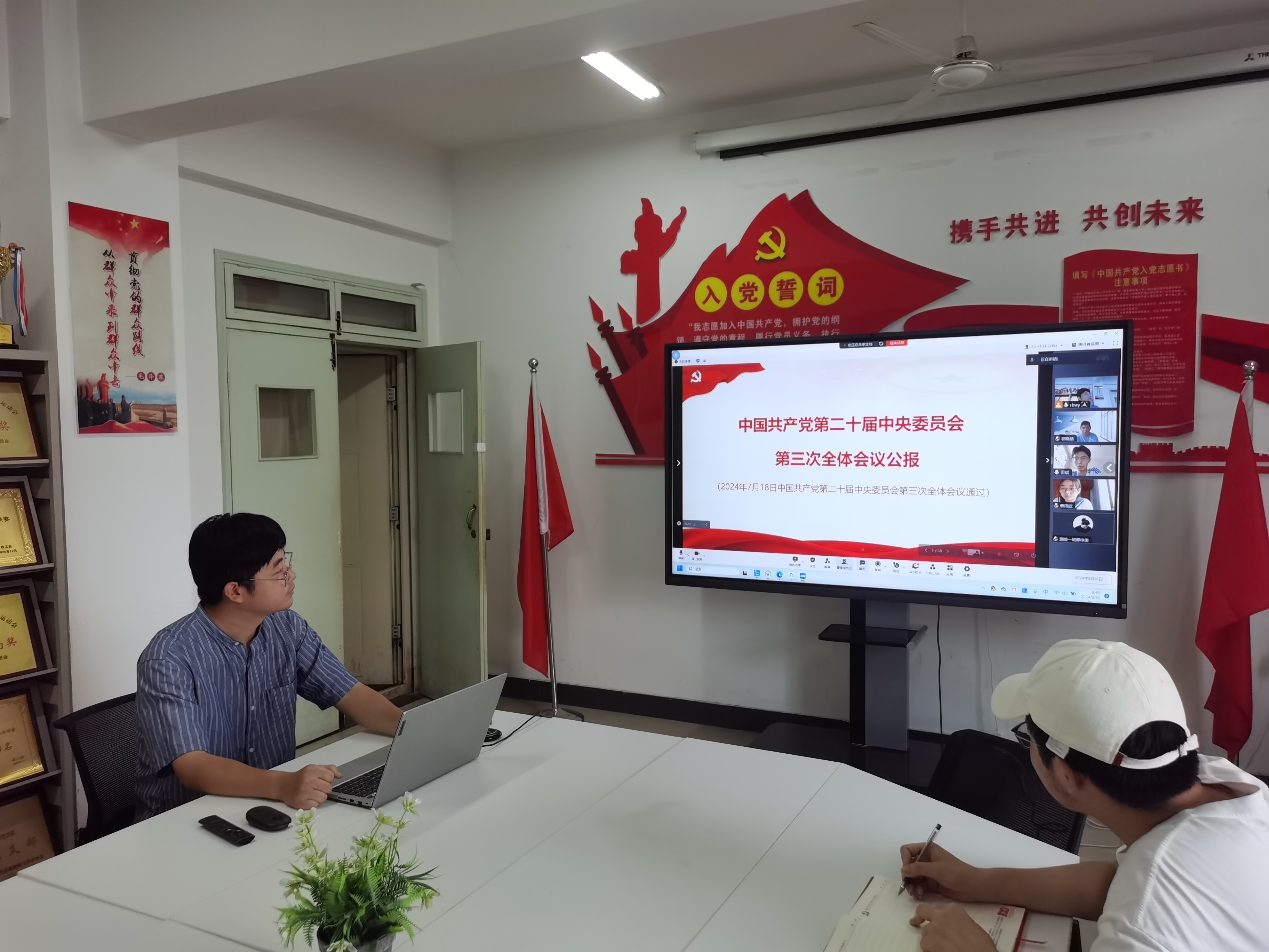8月12日,测绘工程学生党支部采用腾讯会议线上线下相结合的形式,召开学习贯彻党的二十届三中全会精神理论宣讲会。会上,支部书记带领支部全体党员原原本本、逐字逐句学习了《中共中央关于进一步全面深化改革 推进中国式现代化的决定》《中国共产党第二十届中央委员会第三次全体会议公报》等重要文件精神,深刻领悟党的二十届三中全会的重大意义、进一步全面深化改革的目标任务、重大原则等重要内容。接着,支部党员结合自身实际表示,要深化理论学习质效,立足专业和行业发展的现实需要,深切感悟重任在肩的责任感和时不我待的紧迫感,切实把政治理论学习和专业学习结合起来,将学习全会精神焕发出来的政治热情转化为学知识、练本领、长才干的强大动力,为自身和学院的发展奉献自己的力量。 解读视频学习