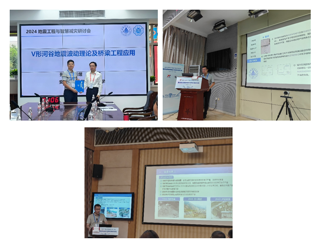 谢礼立院士、Billie F. SPENCER, Jr.院士、Masayoshi NAKASHIMA院士作大会主旨报告,刘汉龙院士等28位知名专家作大会主题报告。张宁教授、陈东教授和李艳朋副研究员分别做题为:“V形河谷地震波动理论及桥梁工程应用”、“模块化混凝土建筑抗震性能研究”、“斜坡地形层状场地地震动力响应模型研究”的交流报告,就土木工程防灾减灾领域的热点话题与参会代表开展了广泛深入的交流与探讨。