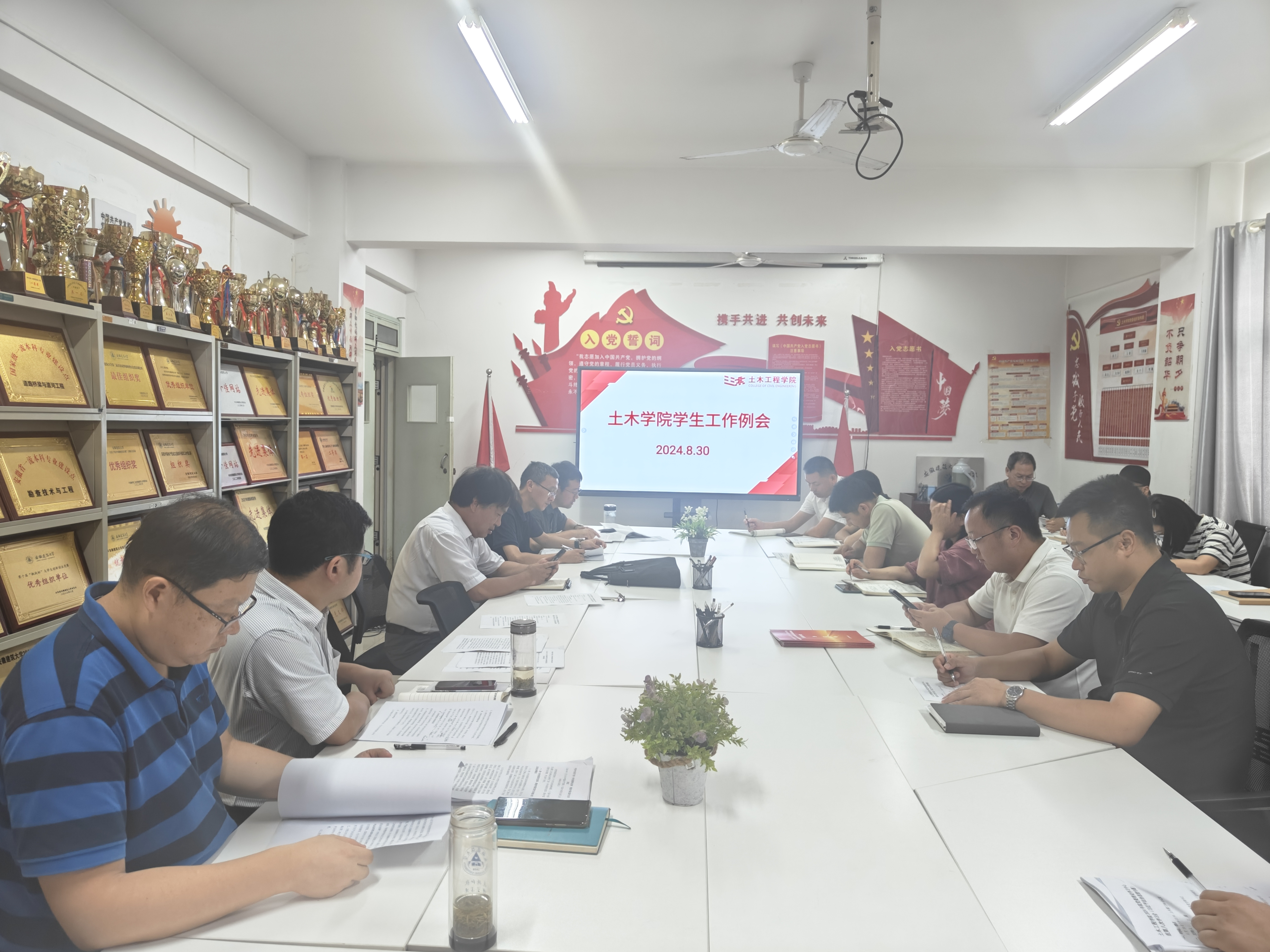 本网讯  为扎实推进新学期各项学生工作有序开展,切实保障学生管理和教育工作开好局、起好步,830日,土木学院在徽匠楼1306会议室召开秋季新学期学生工作例会,学院党委领导班子、全体专兼职辅导员共同参会,会议由学院党委书记王媛主持。