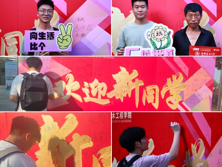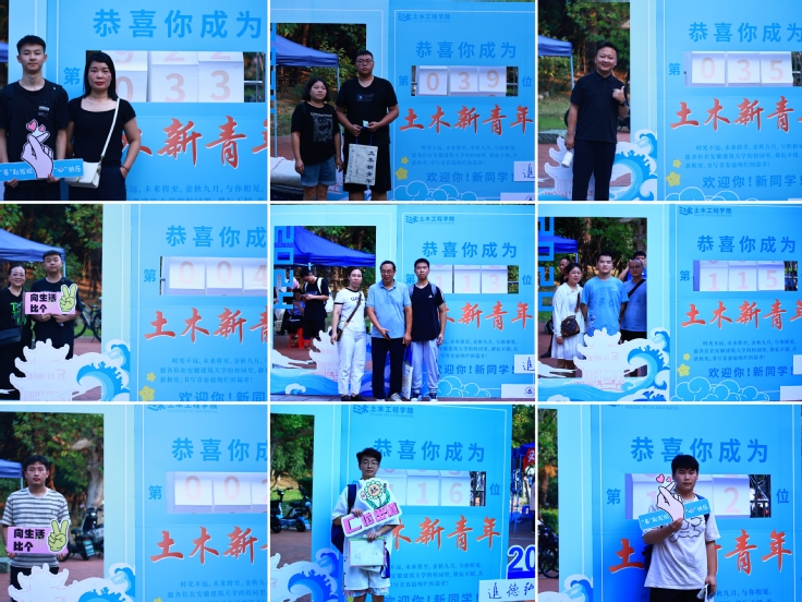 “欢迎来自全国各地各民族的萌新们”——报到点成了新生网红打卡地。志愿者们热情邀请新生们在签名墙上写下名字,和家人一起打卡与“土木新青年”的第一张合影。谨以这份珍贵的留念,作为土木学院与24级萌新们开启大学新篇章的独特扉页。