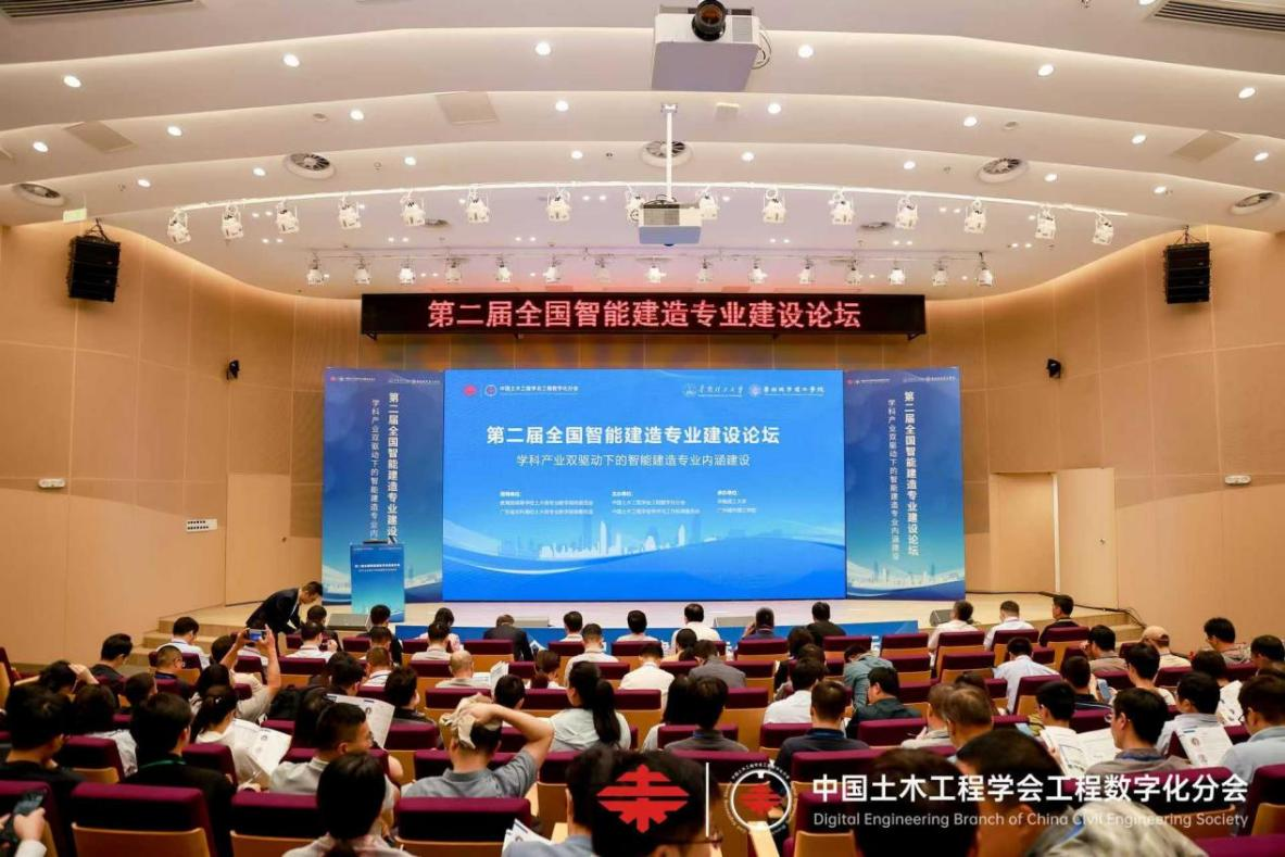 本网讯 近日,第二届全国智能建造专业建设论坛在华南理工大学成功举办。论坛以“学科产业双驱动下的智能建造专业内涵建设”为主题,由教育部高等学校土木类专业教学指导委员会、广东省本科高校土木类专业教学指导委员会指导,中国土木工程学会工程数字化分会、中国土木工程学会学术与标准工作委员会主办,华南理工大学、广州城市理工学院承办,近40多家高校、企业、科研院所、出版社等单位协办。来自全国智能建造领域的300多位高校、企业代表和知名专家学者出席了会议。土木工程学院副院长施国栋,建筑工程系、教学办负责老师应邀参加了本次论坛。