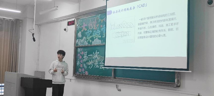 在活动开始之前,会场就已被紧锣密鼓地布置妥当。在参会学生陆陆续续入场就坐之后,活动主持人即宣布开始。首先为同学们宣讲的是魏嘉辰学长,他从大学生结构设计竞赛的角度展开了对其比赛要领及相关问题的解读,其娓娓道来的相关细节阐述极大程度使激发了在场同学对大学生结构设计竞赛的浓厚兴趣。接着上台的是封澦琦学姐,她以数学建模比赛为主题,结合往届比赛特点和经验,详细展开了介绍,其分享内容的通用性和融汇性特点,在参会者中引起了很大的共鸣。最后王敬堂学长结合丰莹学姐制作的精美PPT,让同学们了解到了不少有关桥赛、交赛、互联网+、挑战杯等比赛的知识。三位学长学姐的精彩演说收获了同学们集体热烈的掌声。