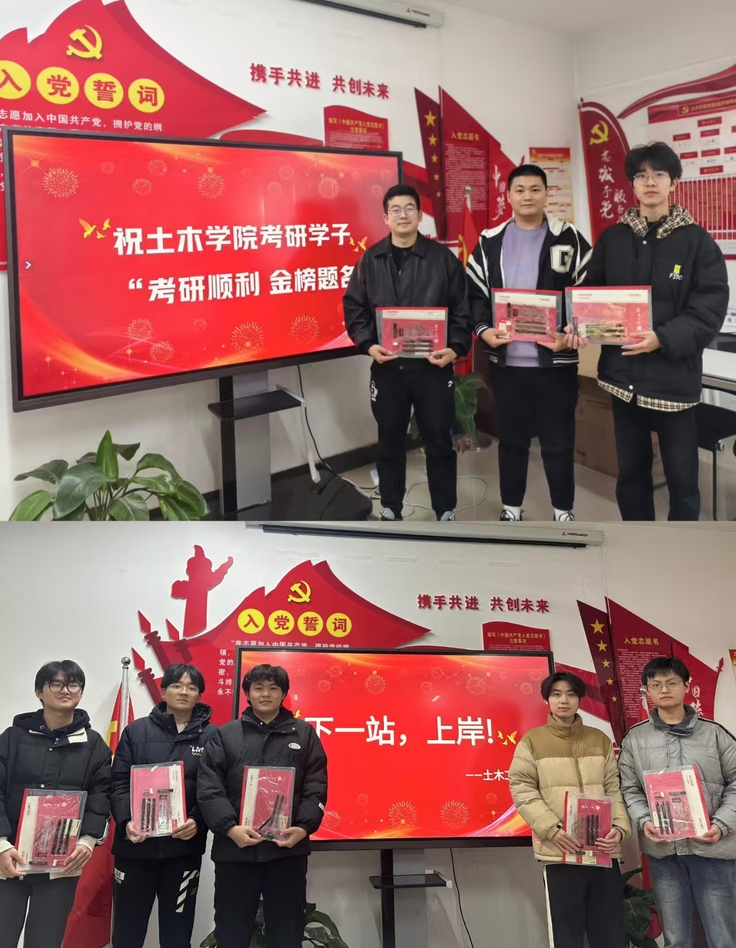 本网讯  寒冬虽至,情暖人心。随着考研日期的日益临近,紧张而炽热的备考气息愈发浓烈。为坚定考研学子备考信心、鼓舞考研士气、缓解备考压力,12月19日,土木学院组织开展了“助力考研 一战成硕”考研送温暖活动。