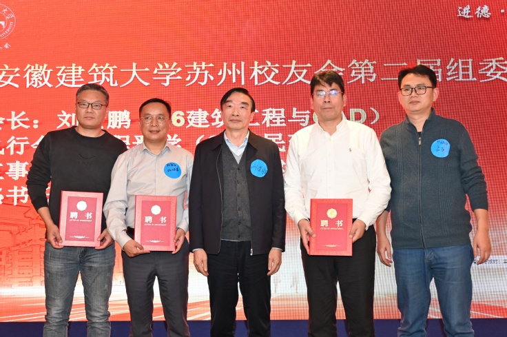 孙道胜为新当选会长、执行会长、秘书长、监事长颁发聘书并合影