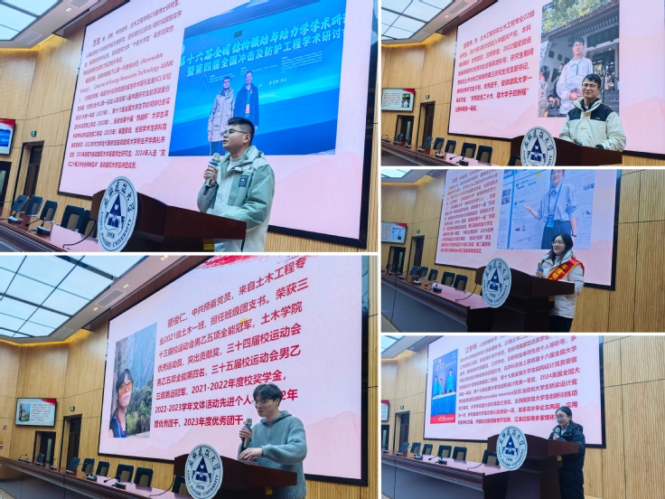 成果展示环节,来自校先进班级22级交通工程1班的张思豪同学从班级概况、学业成绩及思想建设、竞赛成果、文体实践、宿舍建设五个方面介绍了班级建设的经验与成果。22级交通工程的董兰宇同学代表“徽州遗产古桥维护现状调研暑期社会实践”团队,回顾了暑期三下乡期间的感悟,鼓励大家积极担当,主动作为,做徽州古建筑文化的弘扬者、保护者。作为国家奖学金获得者代表,22级土木工程的丰莹同学给大家分享了个人成长路上的心得与感悟。学科竞赛先进代表,22级土木工程的江学琴同学分享在校期间参加各类学科竞赛,特别是全国结构设计大赛的体会与感悟。23级博士方浩同学用真情讲述自己的故事、用感动分享自己的“只管孜孜不倦,其他交给时间”的经历,鼓励同学们树立专业自信,在奋斗中挥洒青春的汗水,在拼搏中铸就人生的篇章。优秀共产党员代表金傲伟从支部基本情况着手,结合“三会一课”及主题党日活动的开展情况,分享了自己特色经验及做法。21级土木工程优秀运动员代表蔡俊仁同学,则分析了学院历届运动会的成绩,号召大家努力拼搏,再创辉煌,为学院运动会奉献一份力量,还特别和与会师生分享了自己生日喜悦。 表彰大会不仅是对过去一年辛勤付出的认可,更是对未来发展的美好展望。土木工程学院将继续坚持立德树人根本任务,深化教育教学改革,努力培养更多德智体美劳全面发展的高素质人才,为实现中华民族伟大复兴的中国梦贡献智慧和力量。往昔荣耀今已去,过往辉煌只是序章, 盼勇敢前行, 为个人和学院的发展续写新篇章。(文/图:王亮、范瑾;一审:叶训;二审:马智鑫;三审:王媛) |
