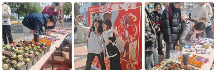 活动以哪吒故事中的“七色宝莲”为灵感,设置多肉植物认养专区。鼓励学生通过认养并细心照料多肉,培养耐心与责任感,逐步养成良好的生活习惯。七彩多肉分别对应“笃学”“坚韧”“创新”等品质,学生挑选代表自身成长目标的多肉,贴上“吒”儿贴纸。“养护多肉就像打磨专业技能,需要耐心和恒心。”2023级学生陈同学捧着象征“专注”的蓝色多肉表示。