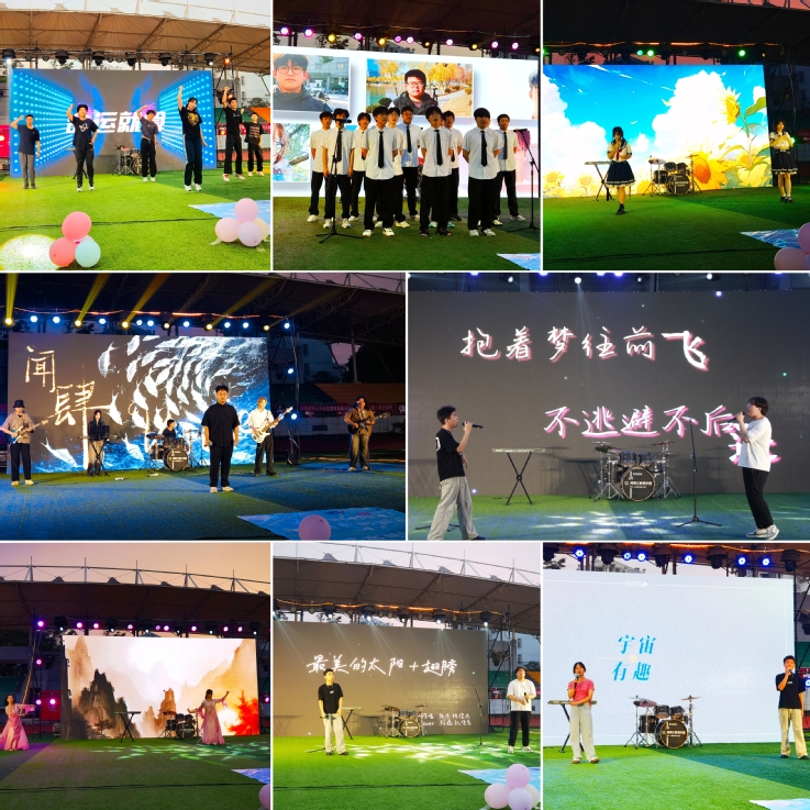 随着夜幕降临,风雨操场被五彩斑斓的灯光装点得如梦如幻。草坪上,毕业生们围坐在一起,手持荧光棒,脸上洋溢着期待与兴奋的笑容。音乐会在一段温馨的开场视频中拉开帷幕,视频中学院领导老师送出了自己的祝福,回顾了毕业生们在土木学院的点点滴滴,从初入校园的青涩到如今的成熟自信,每一张照片都承载着青春的记忆。 音乐会上,来自土木学院的同学们纷纷登台献艺,用歌声和舞蹈表达了对毕业生们的祝福与不舍。开场舞《红日》以激昂的节奏,瞬间点燃了现场的气氛。《你曾是少年》的旋律响起,熟悉的歌词唤起了大家内心深处的青春记忆。歌声中,仿佛能看到刚入校时那个怀揣梦想、朝气蓬勃的自己。乐队的表演将演出推向了一个小高潮,充满力量的嗓音,唱出了对未来的期待和憧憬。一首《有我》唱出了新时代青年的责任与担当。毕业生们深知,他们即将成为社会的中坚力量,肩负着实现中华民族伟大复兴的历史使命。歌声中,他们坚定了自己的信念,要为国家的繁荣富强贡献自己的力量。最后,歌曲《我们的明天》为这场音乐会画上了圆满的句号。全体毕业生一起合唱,歌声中充满了对未来的憧憬和对彼此的祝福。他们知道,虽然即将分别,但他们的心永远在一起,未来还会携手共进,共同创造美好的明天。挥舞的荧光棒、歌声与欢呼声交织在一起,形成了一片欢乐的海洋。