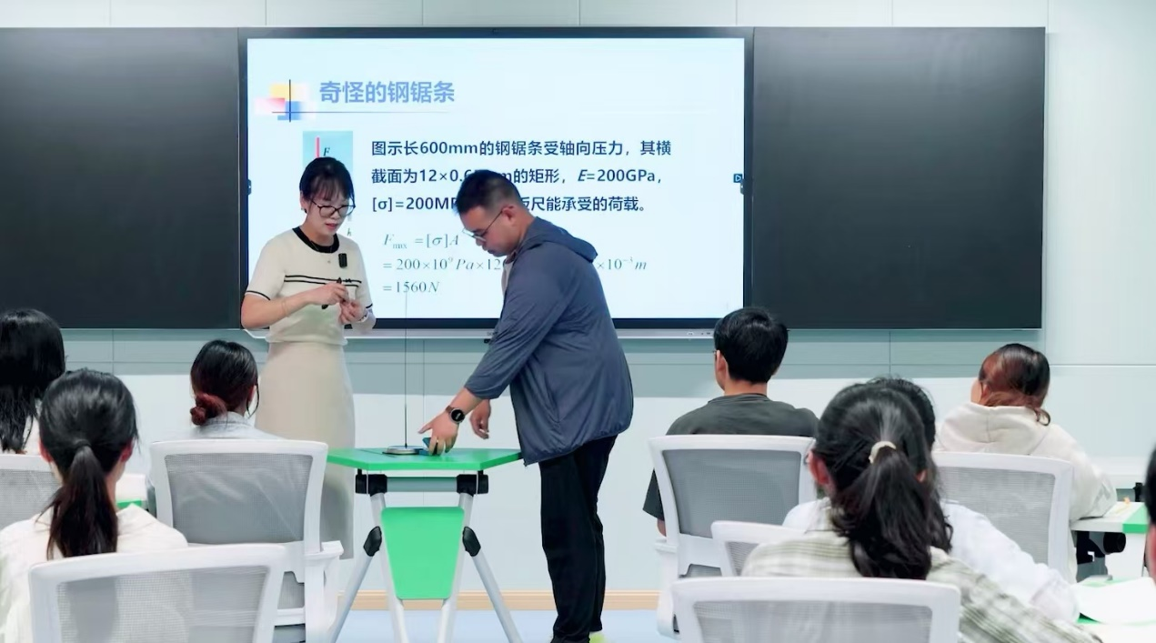 参加教学创新大赛,不仅是一次展示教学成果的机会,更是推动教学改革的重要契机。周老师将备赛过程中形成的创新理念和方法,积极应用到日常教学中,在力学课堂上开展了一系列以赛促教的实践探索,取得了显著成效。教学理念上,周老师实现了从“以教为主”到“以学为主”的转变。她更加注重学生的主体地位,将教学的重点从知识传授转向学生能力培养和素养提升。通过创设真实的问题情境,激发学生的好奇心和求知欲,引导学生主动思考、积极探索,培养学生发现问题、分析问题和解决问题的能力。教学方法上,她根据不同的教学内容和学生特点,灵活运用多种教学方法。以赛促教的实践使力学课堂焕然一新,学生学习积极性大幅提升,课堂氛围活跃。