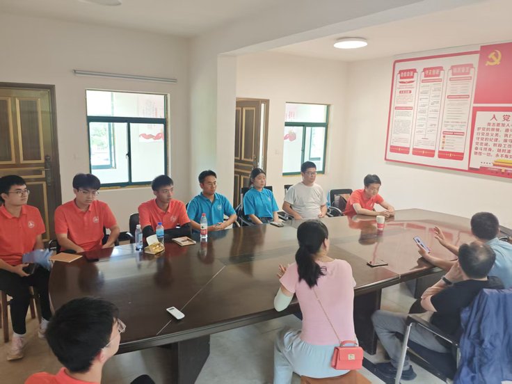 实践团队抵达天子门村后,即刻前往天子门水库管理处,受到水库负责人的热情接待。在会议室,负责人详细介绍了水库概况:该水库兴建于1959年冬,1966年冬竣工,1976年冬翻修大坝,为郎溪县中型水库之一,2010年获批第十批国家级水利风景区,兼具灌溉、防洪、城乡供水及生态调节功能,灌溉覆盖近2万亩农田,守护下游3个行政村的防洪安全,近年还发展生态养殖助力地方经济。随后,负责人坦诚分享了水库现存问题,特别是工作闸附近的混凝土蜂窝状裂缝可能引发的结构承载能力下降、钢筋锈蚀、渗漏等风险,师生决定前往现场实地探查。