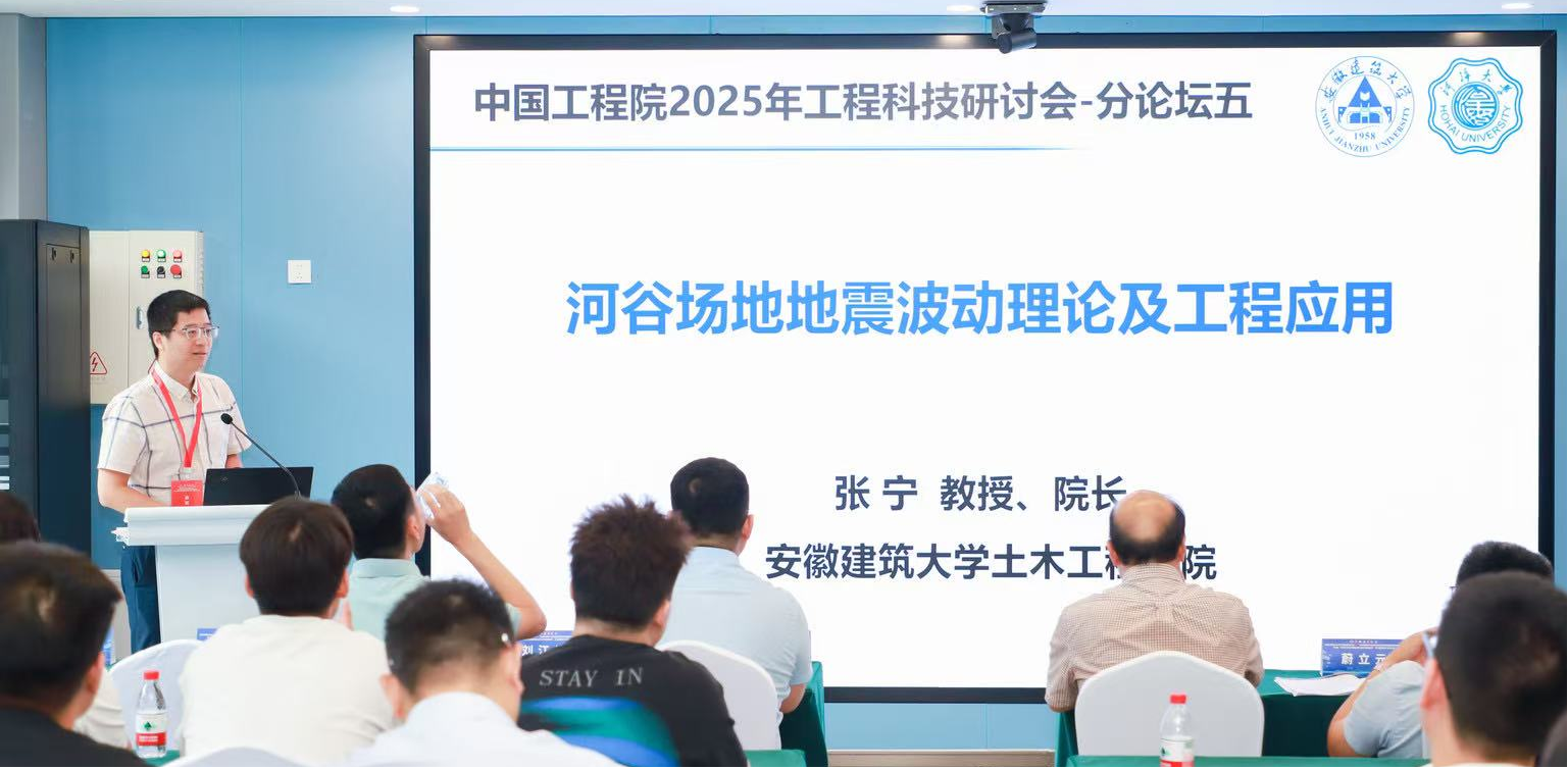 校党委副书记、校长蔡国军教授出席了开幕式,校党委常委、副校长杨科教授以“深部特殊地下空间资源开发利用机遇与挑战”为题作了主旨报告,土木工程学院院长张宁教授以“河谷场地地震波动理论及工程应用”为题作了分论坛报告。