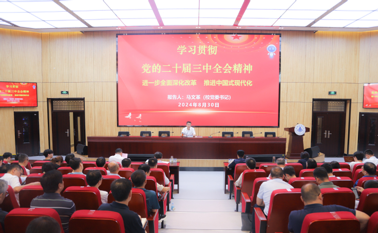 本网讯 为深入学习宣传贯彻党的二十届三中全会精神,8月30日上午,校党委书记马文革作党的二十届三中全会精神集中宣讲,带头讲好“开学第一课”。