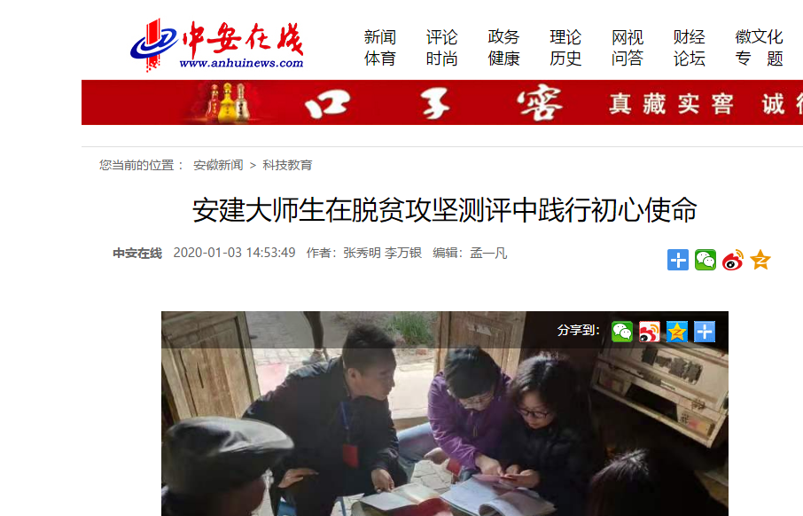 【媒体建大】中安在线:安建大师生在脱贫攻坚测评中践行初心使命