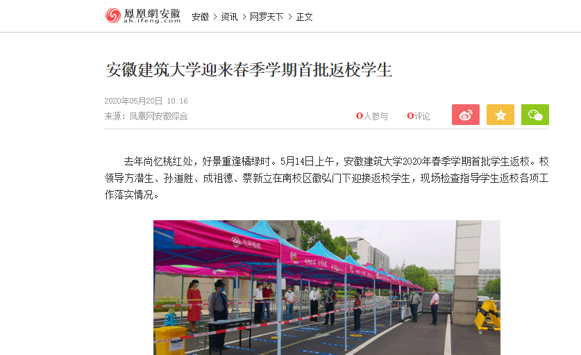 编者按:514日上午,我校迎来2020年春季学期首批学生返校,520日,凤凰网安徽对此进行了报道。