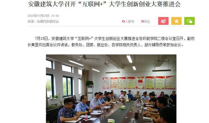 编者按:7月15日,我校“互联网+”大学生创新创业大赛推进会顺利召开。7月20日,凤凰网安徽对此进行了报道。