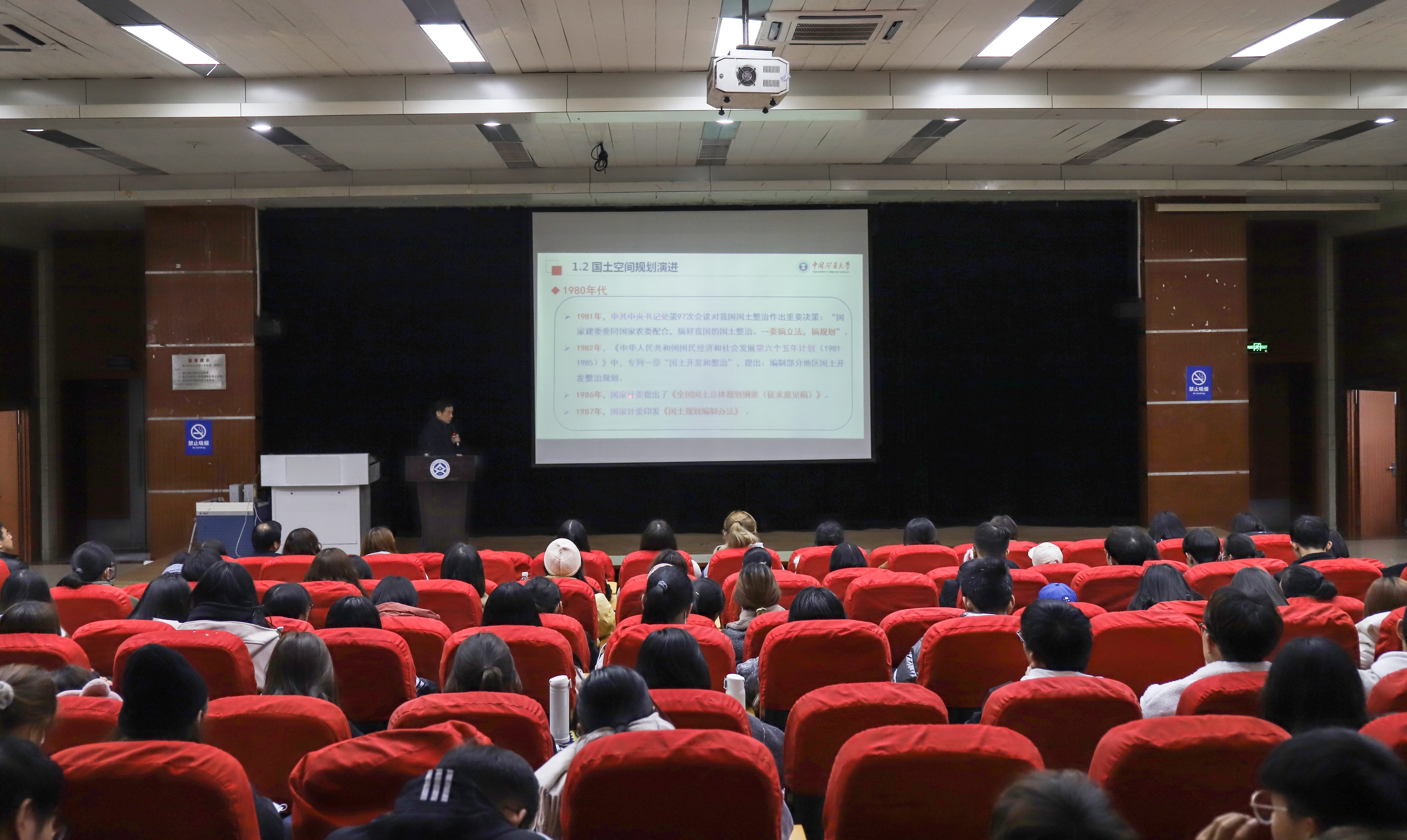 本网讯  11月25日,中国矿业大学教授陈龙乾应邀做客易海大讲堂,在主教1301报告厅作题为《基于土地视角的国土空间规划解读》的学术报告。学校相关专业教师和研究生、本科生200余名聆听报告。
