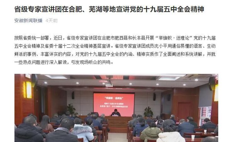 【媒体建大】安徽新闻联播:省级专家宣讲团在合肥、芜湖等地宣讲党的十九届五中全会精神