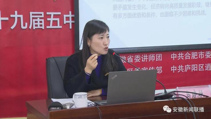 编者按:近日,省级专家宣讲团在合肥市肥西县和长丰县开展“举旗帜·送理论”党的十九届五中全会精神及省委十届十二次全会精神基层宣讲。我校公管学院教师马晓艳走进合肥市庐阳区,向辖区企业代表、街道社区宣讲员等进行了深入细致的宣讲。1227日,安徽新闻联播对此进行了报道。