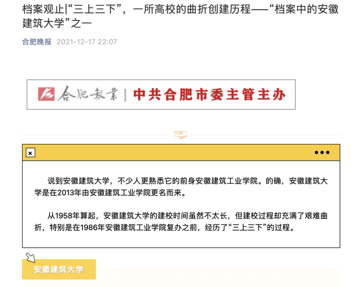 编者按:12月17日,合肥晚报走访我校档案馆,并对我校的发展历史进行了专题报道。
