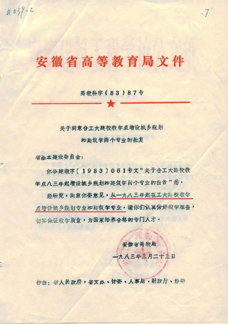 据档案记载,复建后的安徽建筑工业学院设有2个系、6个专业,包括一系的工业与民用建筑专业、给水排水专业,二系的建筑学专业、城市规划专业、建筑管理工程专业、村镇建筑专业;并建有7个教研室、7个实验室和语音室、电教室等。最难能可贵的是,学院的建筑设计室在当时就开始对外承接设计任务。