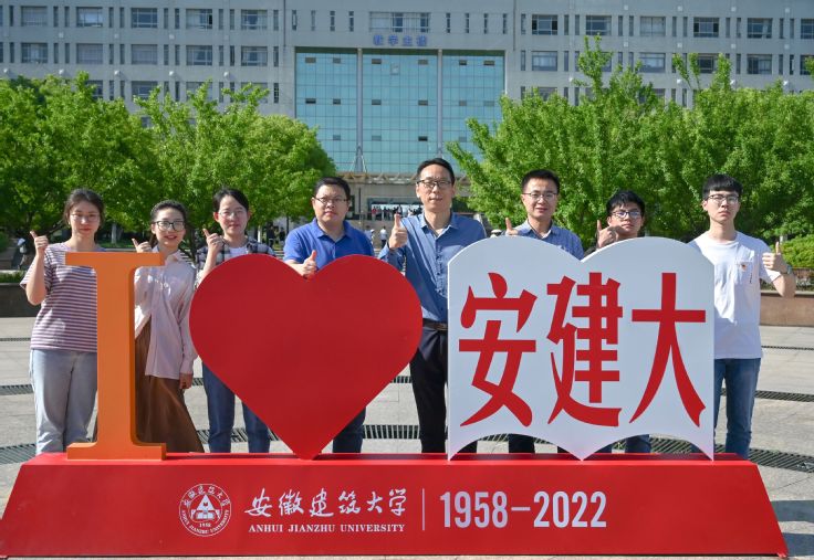正值立夏时节,阳光明媚,风光怡人。宣传部党支部全体党员和大学生记者团、校广播台学生党员来到日月广场中央的“I ♥安建大”打卡点,大家佩戴党员徽章,通过合影打卡等方式为学校六十四周年送上生日祝福。合影完毕,宣传部支部书记徐庚阳与支部党员共同回顾了我校的建校历史,介绍了学校近年来在立德树人、学科建设、科学研究等方面取得的成就,并亲切地与学生党员分享了自己在校30年的求学、工作经历。他希望各位党员在完成好本职工作和学习任务的基础上,要努力为学校的发展添砖加瓦。各位党员深受鼓舞,纷纷表示,站在学校改革发展新的历史节点上,将继续不忘初心,砥砺前行,创造建大新的辉煌。