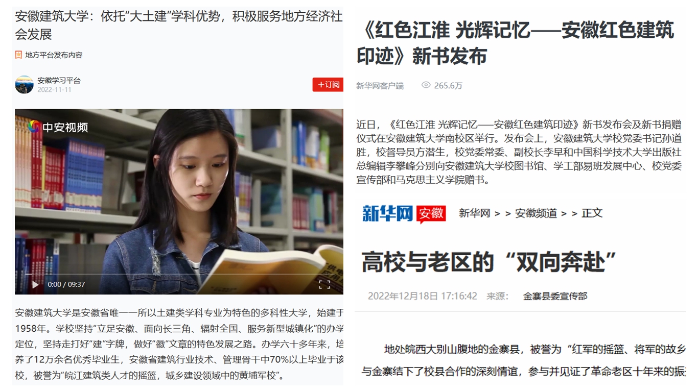 守正创新,持续推进校园文化建设。完成第十三届安徽省文明单位申报工作,根据学校“十四五”教育事业发展规划要求,制定文化培根铸魂工程年度工作计划。按照《全国高校文明校园测评细则》,制定学校文明学院、文明处室测评细则,协调开展文明宿舍、文明班级、文明社团、文明教研室、文明食堂、最美家庭等文明集体创建工作,推进省级文明校园创建工作。开展学校部分楼宇及吉祥物的征集评选工作,将建大精神、建大文化融入到道路、建筑和景观命名中,充分展示学校独特、鲜明的文化积淀与文化追求。发挥校史馆育人功能,加大校史馆讲解员培训,更新讲解设备,美化场馆环境,全年接待参观人数3000余人次;完成省委主要领导到校调研校史馆展陈调整工作,组织开展校史馆史料文物和藏品征集工作,稳步推进校史馆改造;发挥优秀校友引领作用,联合校友工作处组织校友采访活动,编写《从建大启航:校友访谈录(第三辑)》。弘扬优秀传统文化,官网增设“二十四节气”轮播图,看“建”栏目推送6期,举办“易海大讲堂”5期。