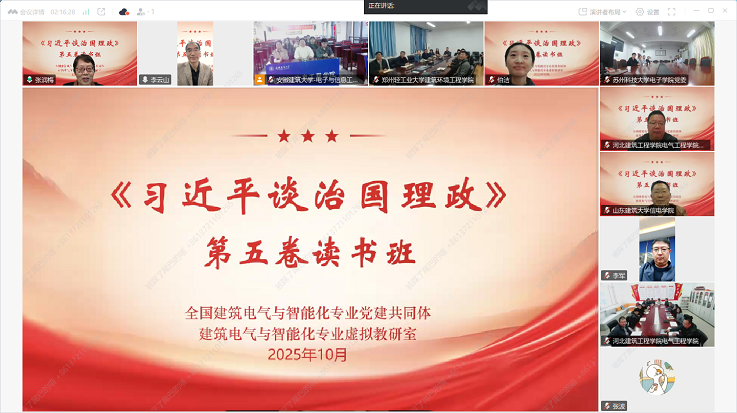 本网讯  为深入学习贯彻习近平新时代中国特色社会主义思想,推动师生党员在深学细悟笃行、深化内化转化上下功夫,切实把学习成果转化为推动事业发展的实际成效。1020日下午,全国建筑电气与智能化专业党建共同体通过建筑电气与智能化专业虚拟教研室平台成功举办专题学习《习近平谈治国理政》第五卷读书班。来自共同体成员单位的党委(总支)负责人、支部书记及师生党员300参加。