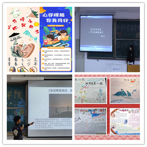 心理健康知识的学习,对心理电影的解读,用心感受生活,给同学们带来心灵上的启迪。环能学院推出多篇推文,普及抵抗抑郁情绪的方法,电信学院开展的“心存暖阳,你我同行” 系列心理健康宣传海报征集活动和材化学院举办的主题为“心海扬帆”的第四届心理手抄报比赛,提醒大学生们关注心理健康,以健康乐观的心态迎接未来。环能学院开展的“易海星途,佳影满心弦”主题心理摄影大赛,引导学生用镜头记录生活中的美,用心感受美好。经管学院举办的心理电影解说大赛中,参赛选手讲述了自己对电影的体会和感悟。环能学院观看的心理影片--《肖申克的救赎》在启迪心灵的同时,还激励同学们在受挫的道路上毅然前行。