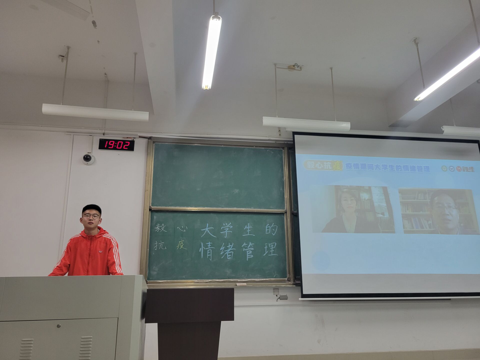 本网讯 为加强大学生心理健康教育工作,提高疫情防控之下大学生管理情绪和舒缓压力的能力,缓解学生因校园封闭式管理产生的心理压力,环能学院积极宣传、组织动员全院学生于3月30日晚观看“毅心抗疫大学生情绪管理”直播讲座,其中大一年级学生在晚自习教室集中观看,高年级同学在宿舍自行观看。