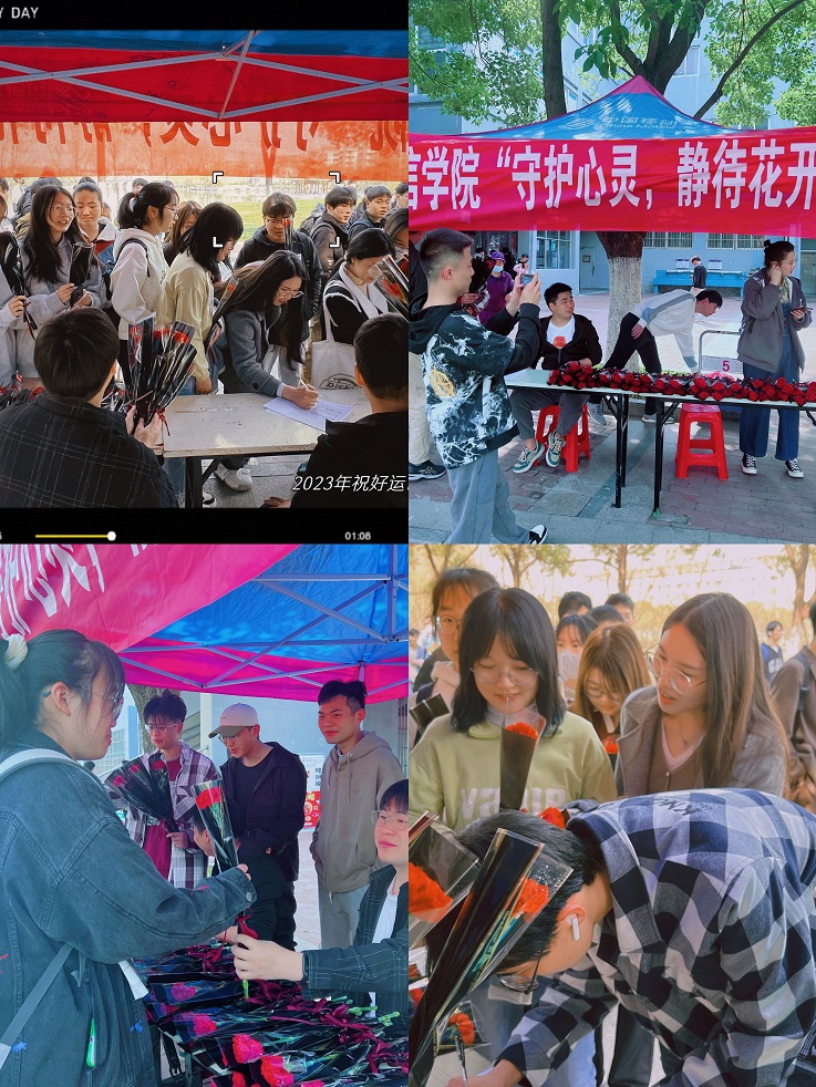38日中午,学院心理辅导站在南食堂门口搭建好帐篷,并将精心包装好的鲜花摆放整齐,静候女生们的到来。“青春永驻,快乐常在!”“天天开心!”一朵朵鲜花,一声声祝福,女生们收到鲜花后,满心欢喜,充分感受到了这份独有的浪漫与温暖。