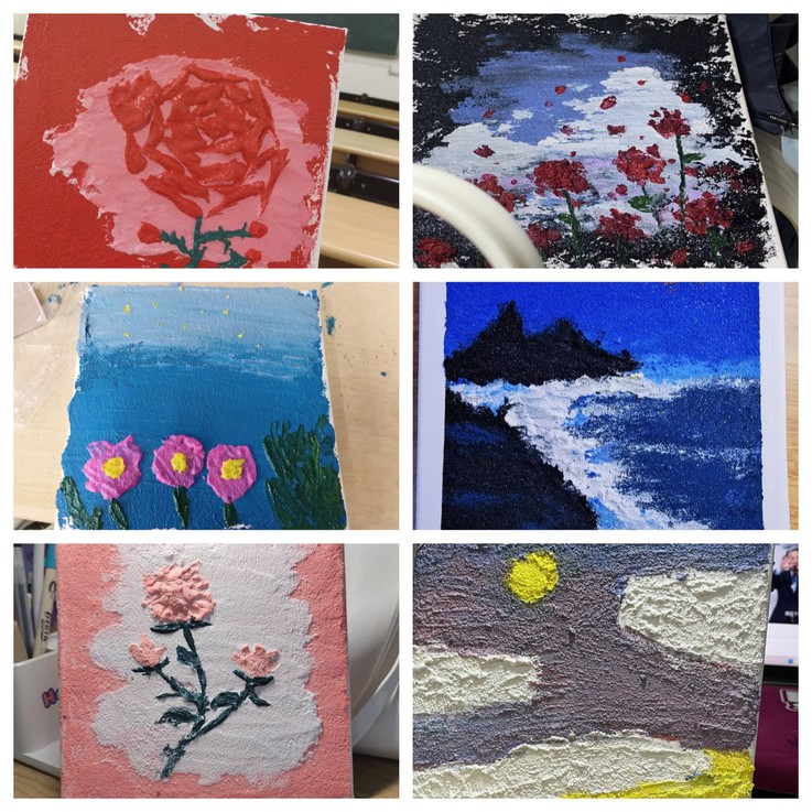 同学们使用石英画笔和特殊的石英画板,以手工勾勒出各色彩的图案和文字,将自己的想法呈现在画布上,经过了一个多小时的精心创作,最终呈现出了独具特色、富有创意的作品。