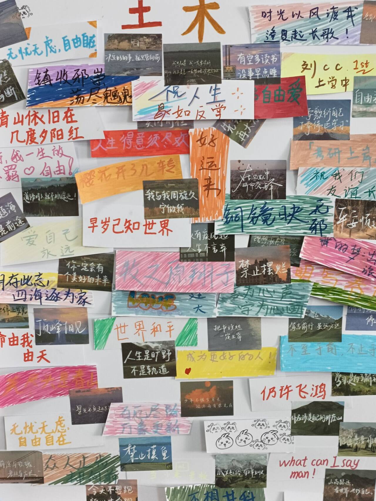 在便签上写下自己的梦想,并拼贴到画板上,在拼贴梦想的过程中整合自我,心怀梦想,创造美好未来。
