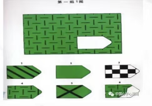下面一张图,图片右下角缺一块,请你从下列6块图片中选一块最合适的补上去,并说明理由。  本测验限时40分钟