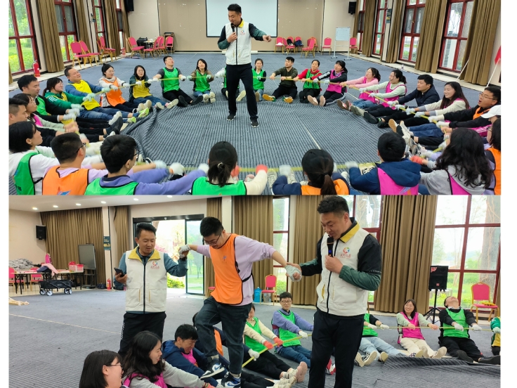 活动伊始,学工部负责人欢迎合肥市第四人民医院机关支部党员的到来并用“感恩、感谢、有为”三个关键词拉开素质拓展帷幕。他表示,我们要感恩这个时代,党和国家对辅导员队伍建设的高度重视,为广大辅导员工作提供了方向指引和政策保障。其次,他转达了学校党委行政对全体专兼职辅导员工作的肯定,感谢全体辅导员老师在学生培养与管理工作中的辛勤付出,感谢第四人民医院对我校心理健康工作的大力支持。最后,他勉励大家要树立“干一行、爱一行、干好一行”的职业精神,努力做好辅导员工作,做有为辅导员,做时代的奋斗者。
