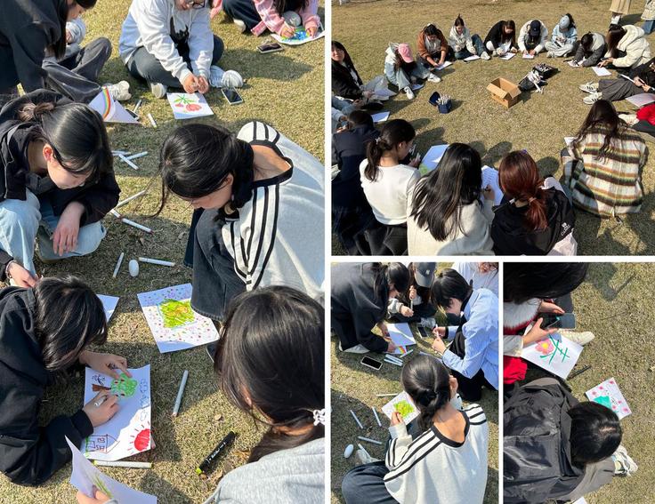 “诗韵青春”飞花令活动以“春”字为令,通过诗词对决与春日诗画创作,让学生们在“等闲识得东风面”的吟诵中感受文化滋养。从“春眠不觉晓”的清新晓景到“万紫千红总是春”的烂漫盛景,参与者将诗句转化为繁花似锦、垂柳依依的水彩画卷,用画笔勾勒出心目中的春天,赋予诗句色彩温度。诗中有画,画中有诗,碰撞出奇妙的艺术火花,实现诗画互文的艺术疗愈,让传统文化在新时代焕发出勃勃的生机与活力,成为培育积极心态的沃土。